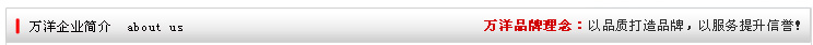 企业理念:拼搏奉献 精益求精 万洋人始终秉承“信誉第一”的创业精神,奉行“用户满意”的服务宗旨! |